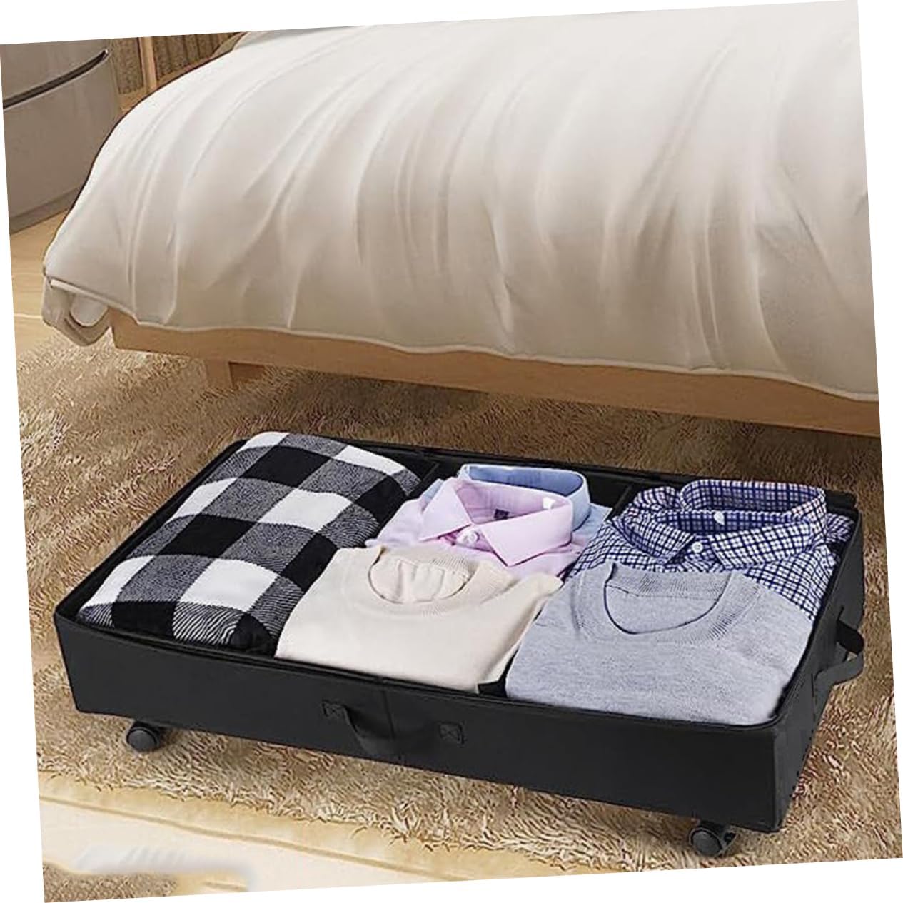 Package List 1 x Under Bed Storage Bag Features -Size:80.00X42.00X16.00cm/31.44X16.51X6.29in bedroom under-bed storage boxes -Material:ABS, oxford cloth, iron Under-bed Storage Bin -Color:Black large capacity clothes storage bag - oxford cloth material: convenient and easy to clean for use room storage bag.Goods Descriptionstorage bin under bed The under bed storage container is not easy to tear, can keep it long time.underbed storage container If you are looking storage bag for under bed with reliable material, I will tell you that our storage bag will be your choice