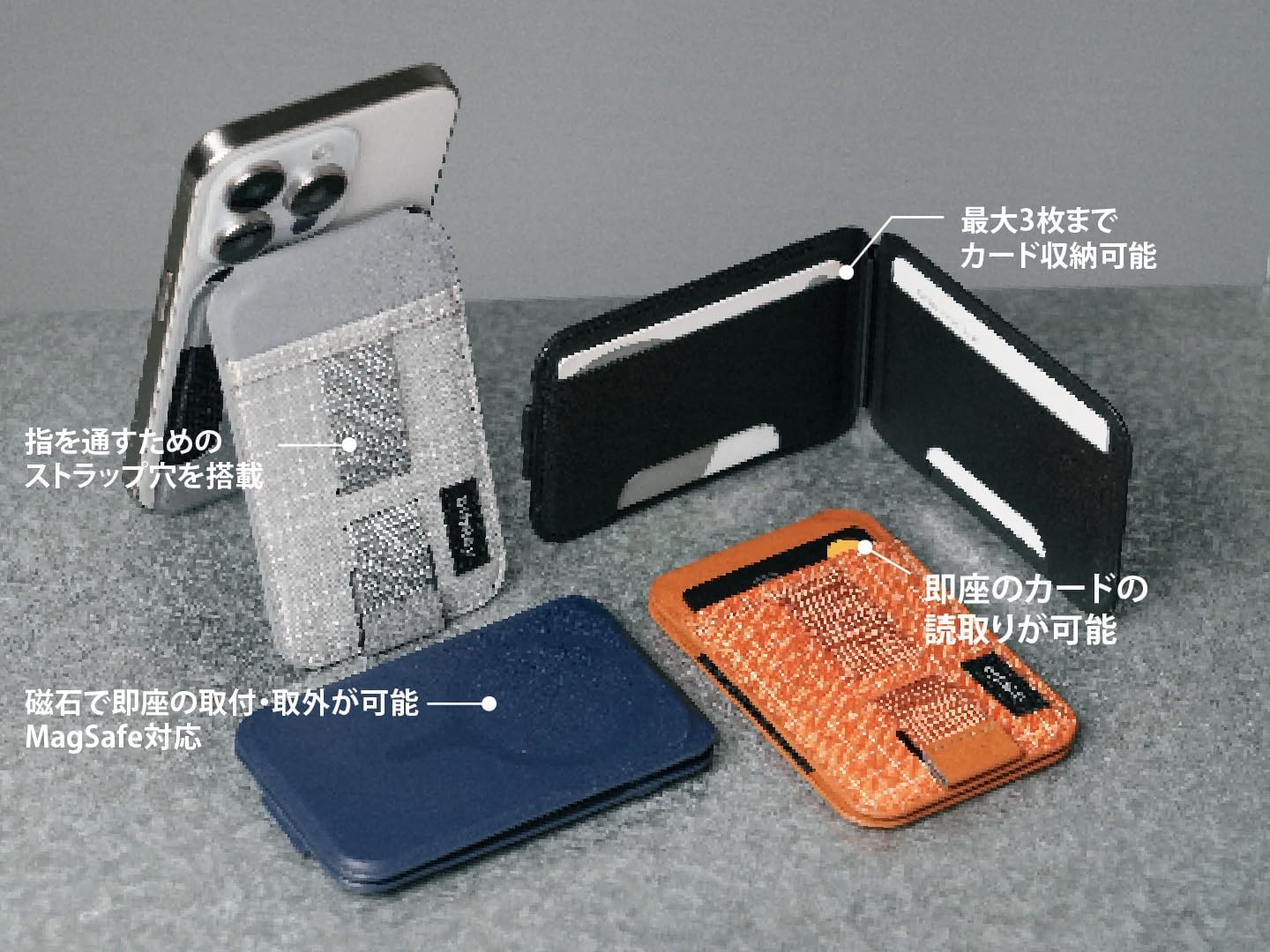 -Quick Magnetic Attachment. Easy Access Anytime. Paired with the adhesive metal ring, instantly secure and detach on any smartphone model. -Portable Wallet Design. The outer card clip enables fast sensing without interference from other cards. Boarding or payment can be executed immediately without removing cards. -Stand Design. Adjustable Viewing Angles Vertical, horizontal, freely adjust to the best angle, providing stable support for the phone. -Functional Look. Combination of water-resistant grid fabric and PU leather for a distinctive design. -Available in Multiple Colors Black / Grey / Blue / Orange -Compatible with iPhone and Android. Includes bitplay Adhesive Metal Ring for significantly enhanced attachment strength. Enjoy the convenience brought by bitplay's magnetic wallet stand.