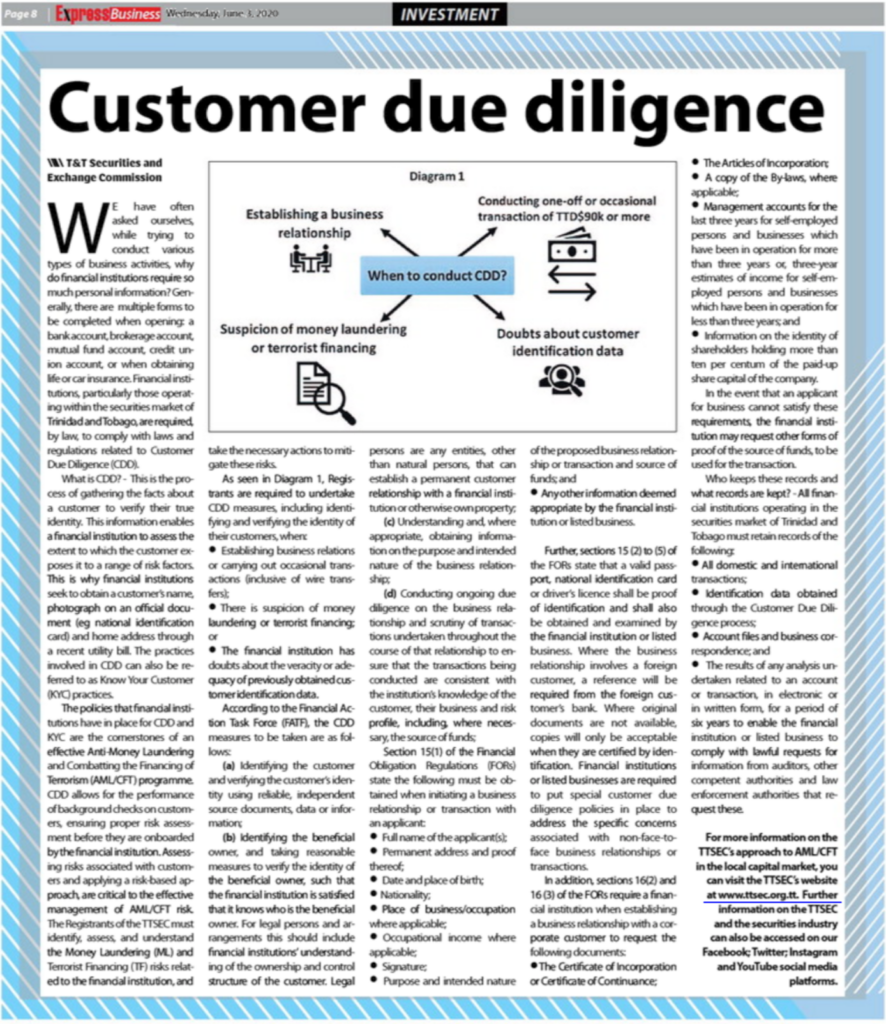 Customer Due Diligence We have often asked ourselves while trying to conduct various types of business activities, why do financial