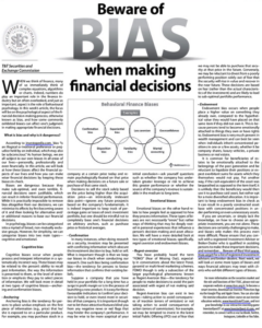 When we think of finance, many of us immediately think of complex equations, algorithms or charts. Indeed, numbers do play an important role in the finance industry but an often overlooked, and just as important, aspect is the role of behavioural psychology. In this week’s article the focus will be on the psychological aspect of the financial decision-making process, otherwise known as bias, and how some commonly exhibited biases can affect one’s judgment in making appropriate financial decisions.