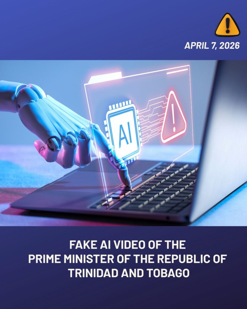 A fake video is currently circulating on social media platforms falsely depicting the Prime Minister of the Republic of Trinidad and Tobago, the Honourable Mrs. Kamla Persad‑Bissessar promoting an investment opportunity. The video is artificial intelligence (AI)-generated and completely false.