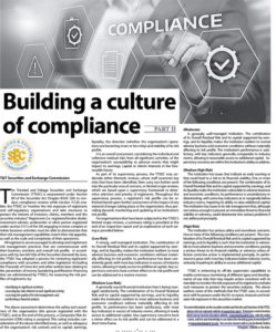 The Trinidad and Tobago Securities and Exchange Commission (TTSEC) is empowered under Section 89 of the Securities Act Chapter 83:02 (SA) to conduct compliance reviews while Section 7(1)(l) enables the TTSEC to “monitor the risk exposure of registrants and self-regulatory organisations and take measures to protect the interest of investors, clients, members and the securities industry”. Registrants (i.e. registered broker dealer, investment adviser, underwriter or other person registered under section 51(1) of the SA) engaging in more complex or riskier business activities must be able to demonstrate that their risk management capabilities match their risk appetite, as well as the scale and complexity of their operations.
