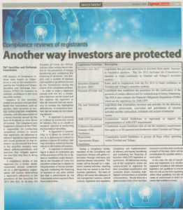The conduct of compliance reviews (also known as inspections) is one of the mechanisms used by the Trinidad and Tobago Securities and Exchange Commission (TTSEC) for investors to maintain confidence in the local securities market. The Compliance and Inspections Division, of the TTSEC, is responsible for conducting compliance reviews to ensure that registrants are adhering to relevant legislative requirements and issued guidance; so that investors can be assured that firms in the securities industry, have robust policies/procedures and practices that mitigate against the risks that they face, in doing business.