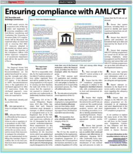 In this week’s article the respective roles of the regulator and the registrants in ensuring Anti Money Laundering and Combating the Financing of Terrorism (AML/CFT) requirements will be discussed. The registrant plays an important role in ensuring that the AML/CFT measures adopted in the market are robust, and in this regard, the function of the Compliance Officer (CO) within registrant companies is of paramount importance and will be the specific are of focus.