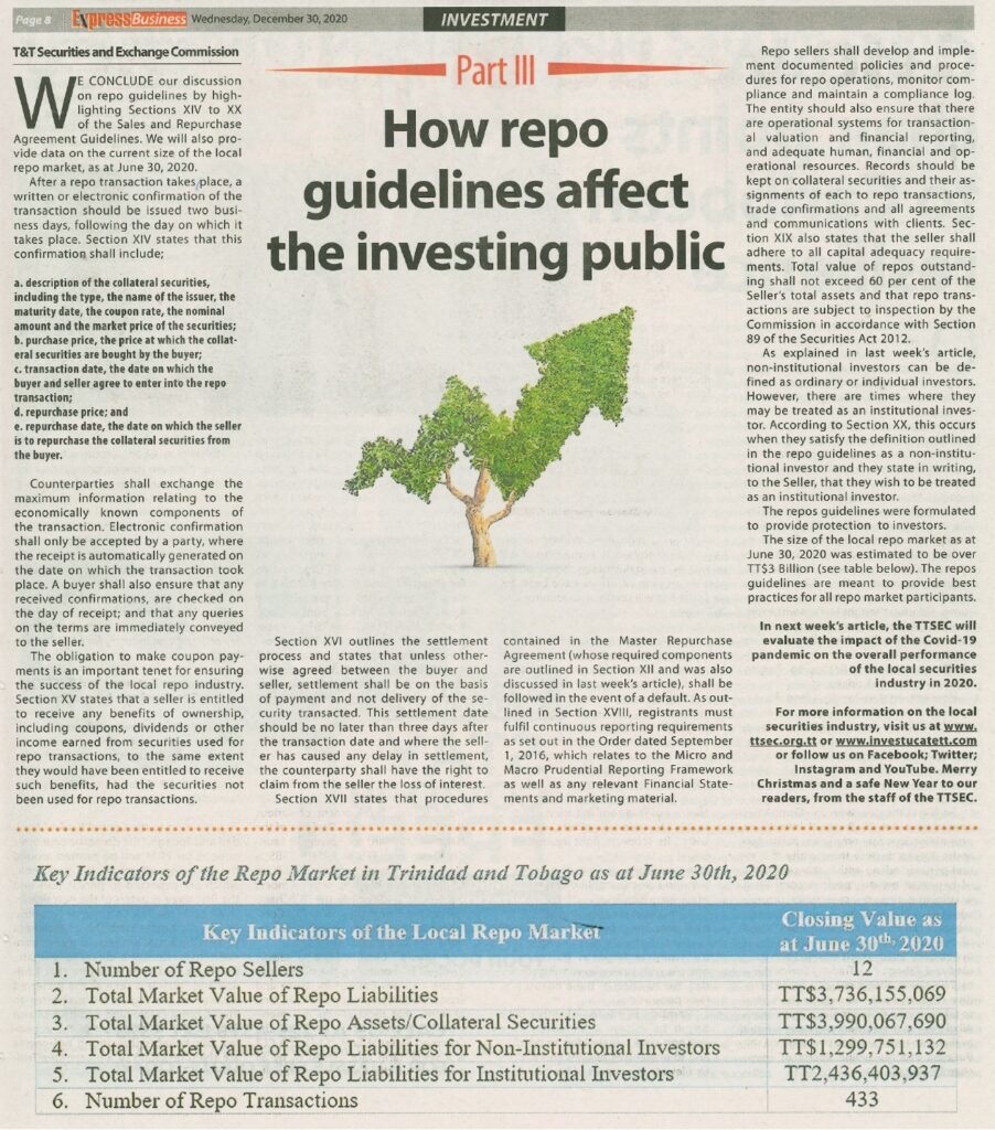 We conclude our discussion on Repo Guidelines by highlighting Sections XIV to XX of the Sales and Repurchase Agreement Guidelines. We will also provide data on the current size of the local repo market, as at June 30th, 2020.