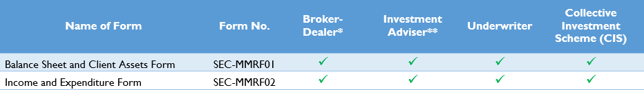 *For Broker-Dealers that are investment managers of CISs, the SEC-MMRF01 and SEC-MMRF02 must be completed for the investment manager itself as well as for each CIS that it manage.