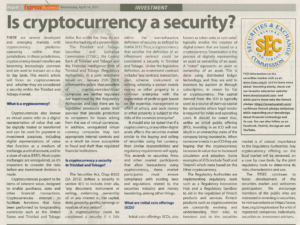 There are several developed and emerging markets with cryptocurrency platforms operating within their jurisdictions. In these jurisdictions, cryptocurrency-based transfers are becoming increasingly common and are used to transact on a day to day basis. This week’s article will focus on cryptocurrencies and whether they are considered a security within the Trinidad and Tobago market.