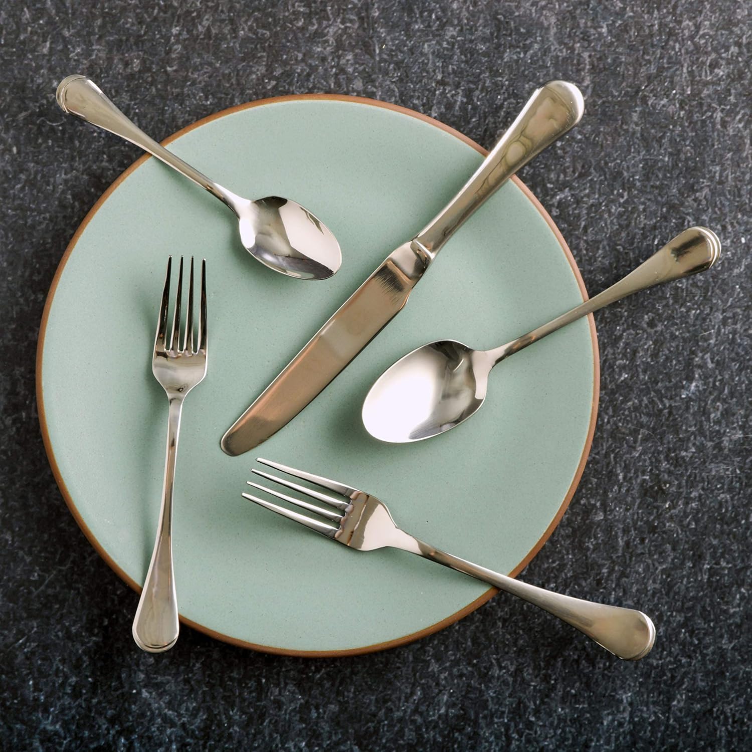Elevate your table setting with the Classic Manchester 20-Piece Stainless Steel Flatware Set, featuring a polished and modern design that complements any dining occasion. Crafted from premium stainless steel, this rust resistant cutlery set provides lasting durability and style. The wide-handled dinner knives offer a comfortable grip, while dishwasher safe utensils make cleanup effortless. Perfect for both everyday meals and entertaining guests, this silverware collection brings timeless elegance to your dining experience.