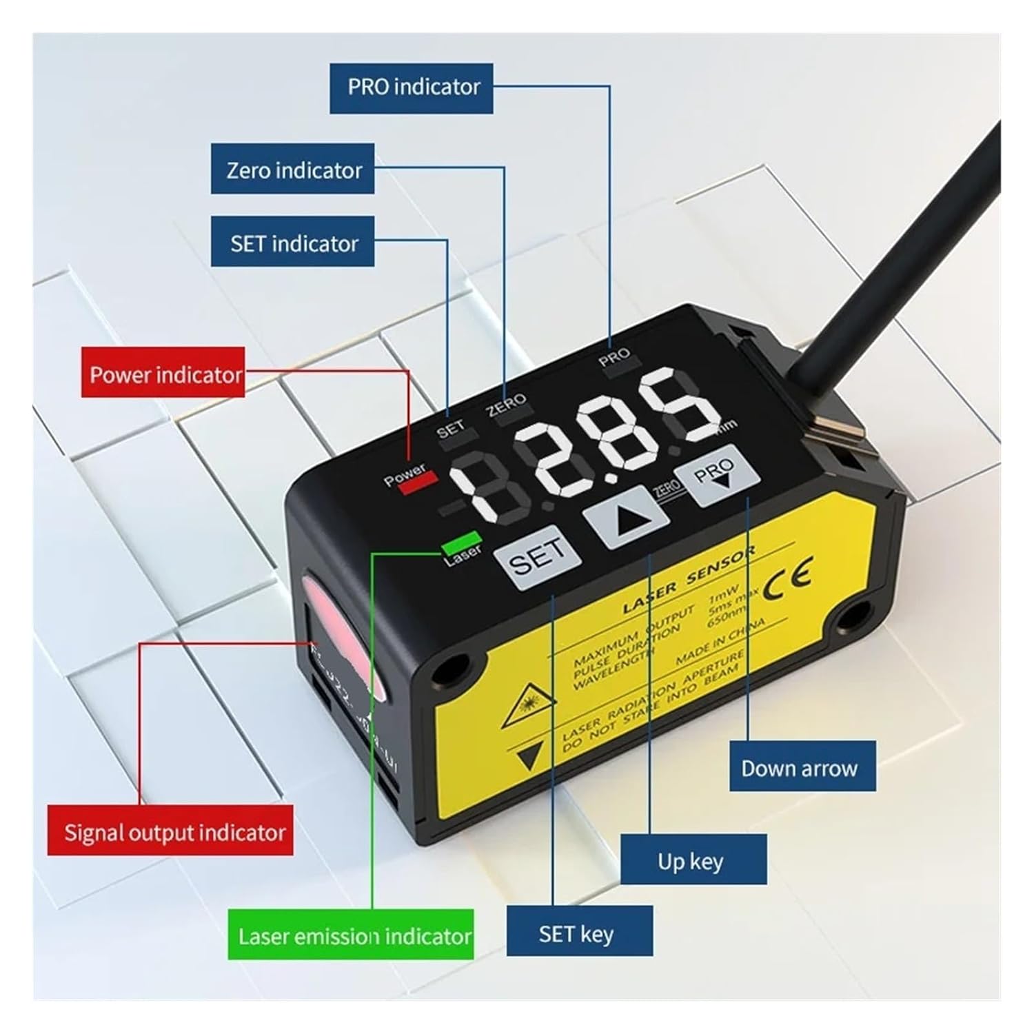 Is_customized : YesTheory : Optical SensorMaterial : MetalType : Optical-Electronics SensorOutput : Analog SensorOrigin : Mainland ChinaUse : Distance measurement; Thickness detectionMeasurement center distance : 50mmMeasurement range : ±15mmBeam diameter : 70mRepeatability : 30mLinearity : ±0.3%F.S.output : NPN/analog 0-5V/4-20mA
