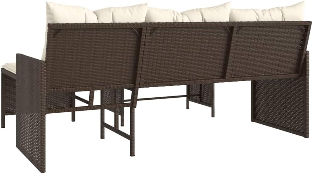 This L-Shaped Garden Sofa is a comfy mix of style and utility, made for seating in all sorts of indoor and outdoor spots. It’s built strong with a combo of PE rattan and powder-coated steel, which not only looks good but also adds durability for regular use in gardens, patios, or balconies.Top-quality PE rattan building offers durability and style, great for outdoor areas.Weather-resistant cushions keep comfy and hold their shape for ages, boosting your relaxation.The layout easily shifts from indoor lounges to outdoor gardens, meeting all sorts of seating needs.Removable cushion covers make for easy cleaning, keeping your sofa looking top-notch.Dimensions fit up to 3 people easily, which is perfect for hangouts or family time.Color:Brown Shape: OtherMaterial: Synthetic Poly RattanFinish: Powder-Coated Indoor/Outdoor: Indoor / OutdoorCover Included: NoRoom: Garden and terraceCapacity: 3 seater sofaMaximum Number of People: 3Maximum Weit: 242.5 lbs.#Dimensions: 47.2 x 67.0 x 28.5 in. (W x L x H)Surface Height: 0.4 in.Leg Height: 12.2 in.Weight: 57.32 lbsSeat Depth: 19.7 in.Seating Capacity: 3Swings: NoDelivery Contains: 1 x 3-seater garden sofaAssembly Required: YesRecommended Number of People for Assembly: 2Patio Furniture & Accessories / Patio Seating / Sofas