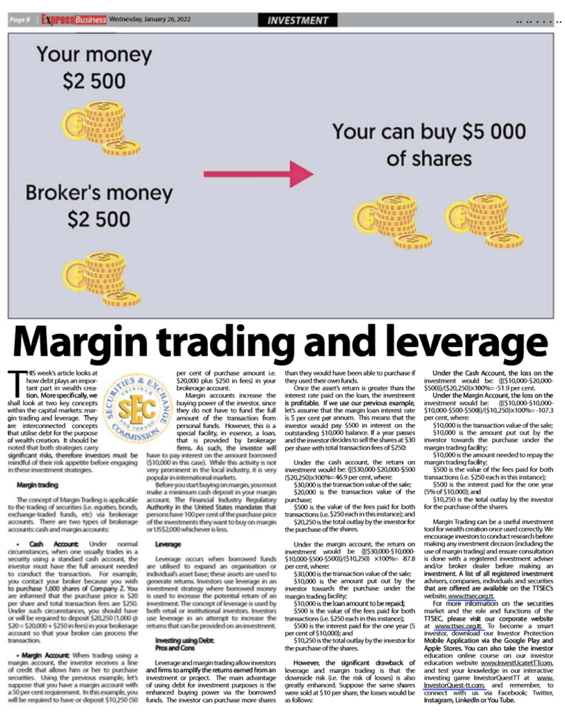 This week’s article looks at how debt plays an important part in wealth creation. More specifically, we shall look at two (2) key concepts within the capital markets: Margin Trading and Leverage. They are interconnected concepts that utilise debt for the purpose of wealth creation. It should be noted that both strategies carry significant risks, therefore investors must be mindful of their risk appetite before engaging in these investment strategies.
