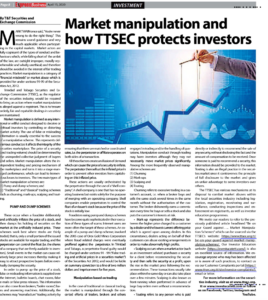 Trinidad and Tobago Securities and Exchange Commission (TTSEC), as the regulator of the securities industry, would be required to bring an action where market manipulation is alleged against a registrant, to ‘ensure orderly, fair and equitable dealings in securities’, are maintained.