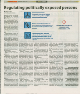 In our series on Anti-Money Laundering and Countering the Financing of Terrorism (“AML/CFT”), we continue this week by providing an understanding of individuals that are classified as ‘Politically Exposed Persons’ (PEPs). PEPs are categorised as potentially high-risk customers that receive particular attention under relevant international standards and guidelines such as the Financial Action Task Force (“FATF”) 40 recommendations. The FATF defines a PEP as “an individual who is or has been entrusted with a prominent public function”. Regulation 20 of the Financial Obligations Regulations 2010 (“the FORs”), defines a PEP as: