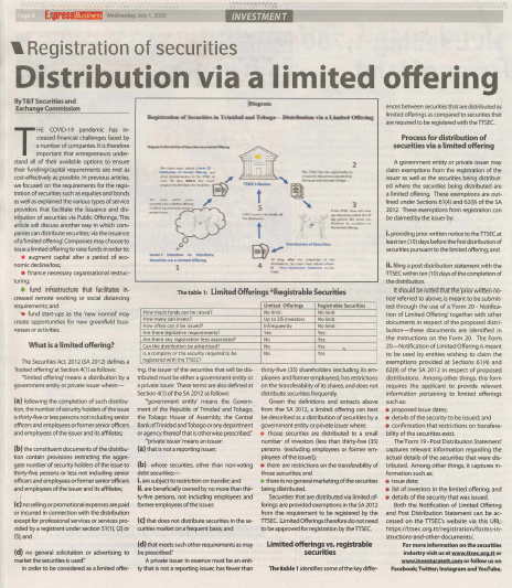 Read more here —> Registration of Securities in Trinidad and Tobago – Limited Offerings