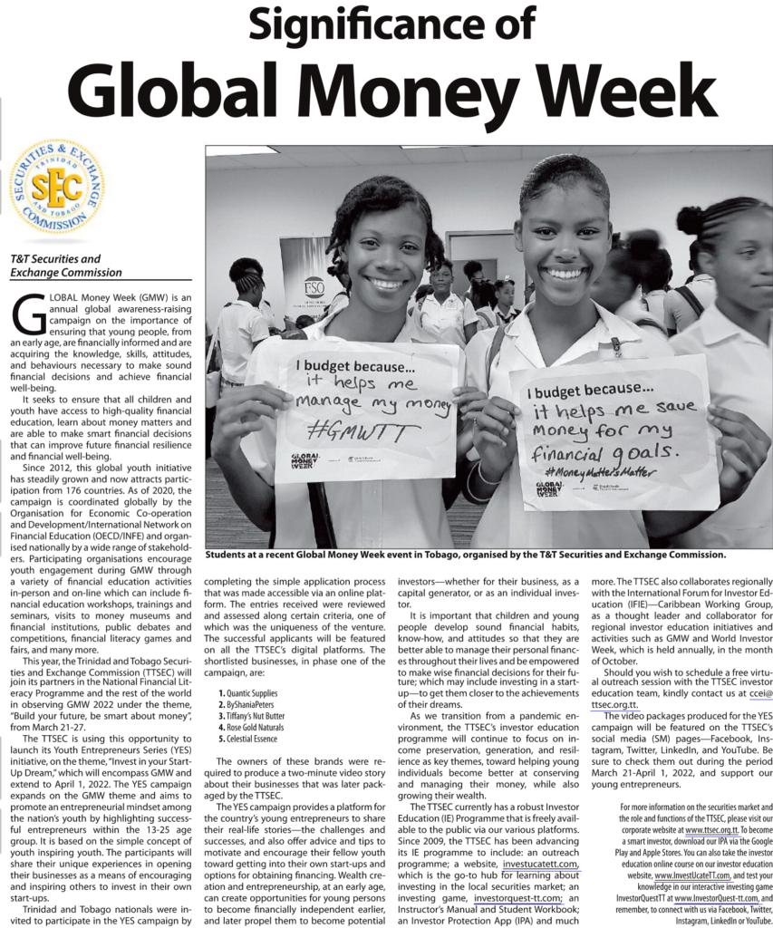 This week we look at Global Money Week (GMW) and its significance as an annual global awareness-raising campaign on the importance of ensuring that young people, from an early age, are financially informed and are acquiring the knowledge, skills, attitudes, and behaviours necessary to make sound financial decisions and achieve financial well-being.