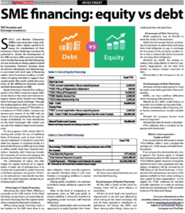 Small and Medium Enterprises (SMEs) may encounter many challenges when raising capital to finance the development of their businesses. These challenges can have the potential to  hinder the development of the SME and also stifle economic development. Equity financing and debt financing are two (2) methods of raising capital utilised by businesses. However, because there are distinct advantages and disadvantages associated with each type of financing option, most businesses employ a combination of equity and debt to support their capital needs. This week’s article discusses some of the differences between equity and debt financing for an SME.
