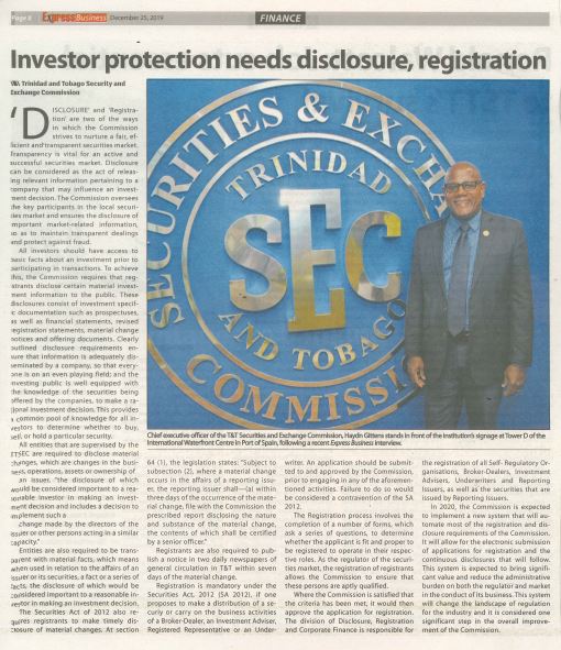 Over the course of this article series, the Trinidad and Tobago Securities and Exchange Commission (TTSEC) has sought to educate […]