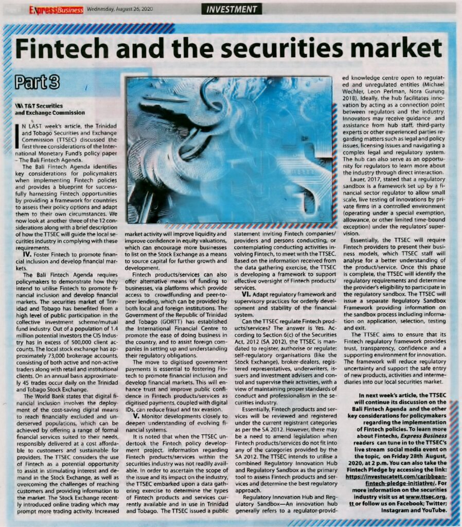 Trinidad and Tobago Securities and Exchange Commission (“TTSEC”) is host to the 9th Technical Assistance Programme for financial sector regulators […]