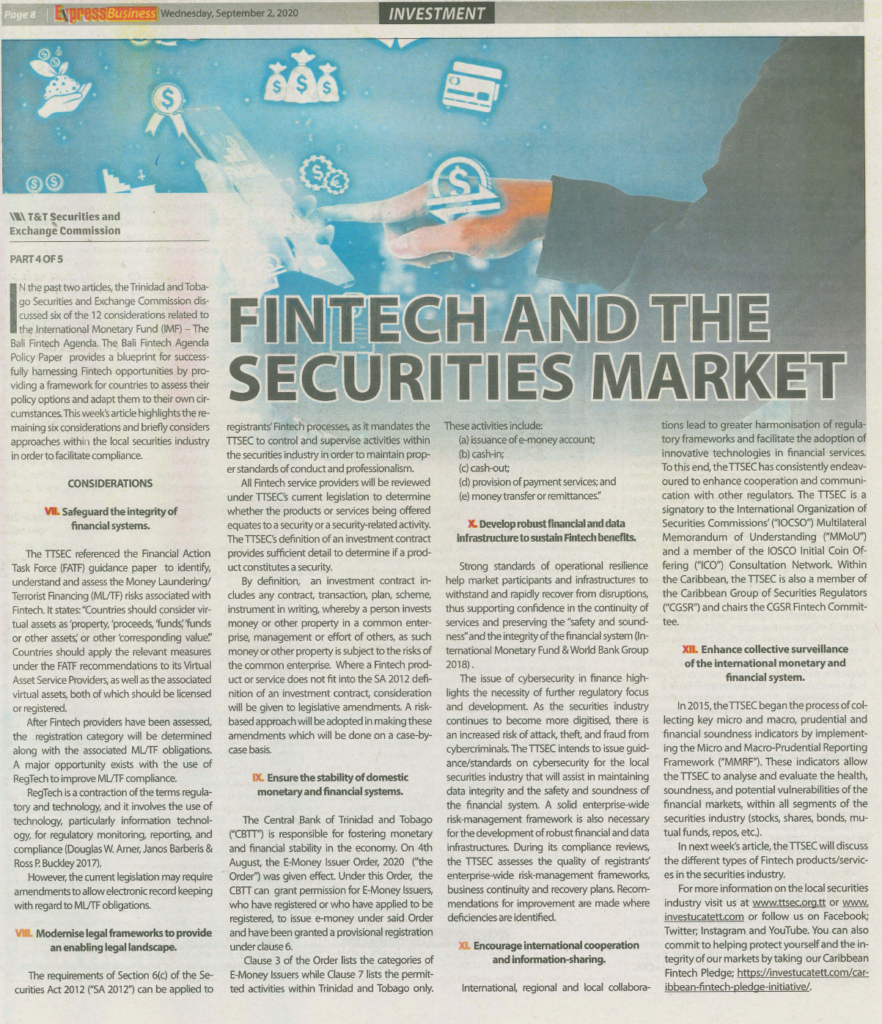 In last week’s article the Trinidad and Tobago Securities and Exchange Commission (“TTSEC”) discussed the first three (3) considerations of