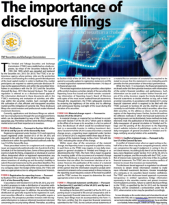 The Trinidad and Tobago Securities and Exchange Commission (TTSEC) was established as a body corporate, by virtue of the Securities Industry Act of 1995 (“SIA 1995”) which was repealed and replaced by the Securities Act, 2012 (“SA 2012”). The TTSEC is an autonomous agency whose primary roles are the protection of investors and fostering the orderly growth/ development of the local capital market. In order to facilitate this, market participants are required to submit particular disclosure filings via the approved forms and within the prescribed timeframes in accordance with the SA 2012 and the Securities (General) By-laws, 2015 (“the General By-laws”). This type of regulation is referred to as a disclosure-based approach. The information disclosed in these documents aids in the TTSEC’s monitoring and evaluation of activities and offerings within the securities market.